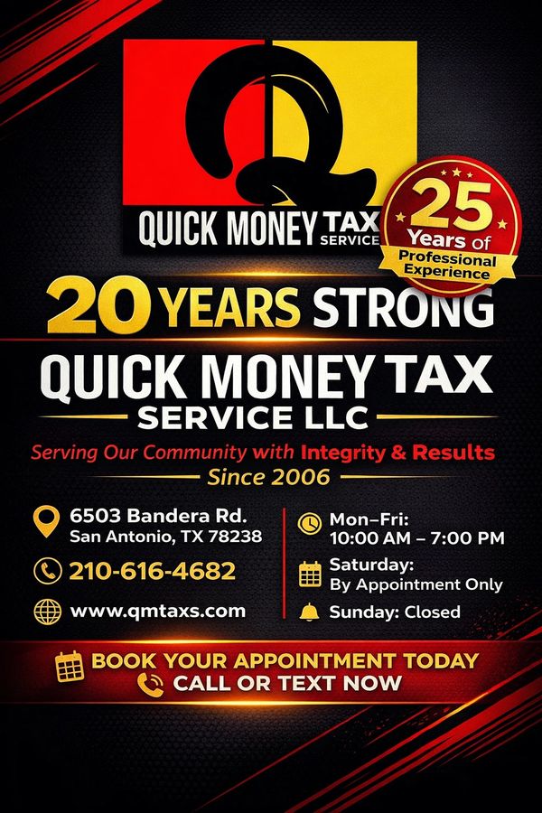 At Quick Money Tax Service LLC, our mission is to deliver reliable tax preparation and financial support services with clarity, accuracy, and care. We strive to build lasting client relationships by offering trusted guidance and responsive service year-round.